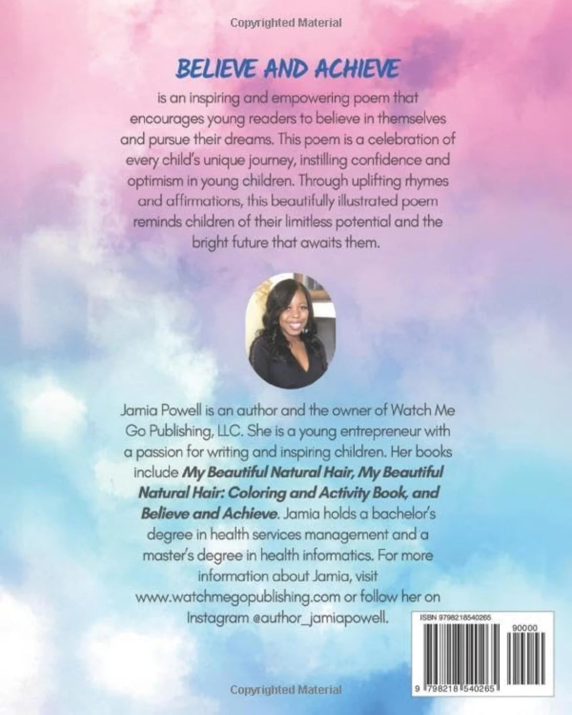 Books Believe and Achieve $12.00 My Beautiful Natural Hair! $12.00 My Beautiful Natural Hair: Coloring & Activity Book $9.00